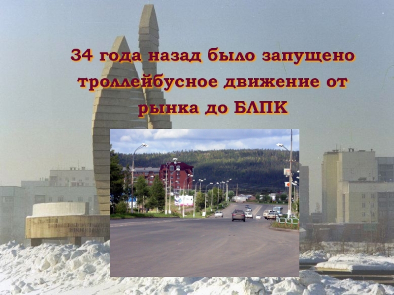 Слайд 1034 года назад было запущено троллейбусное движение от рынка до БЛПК