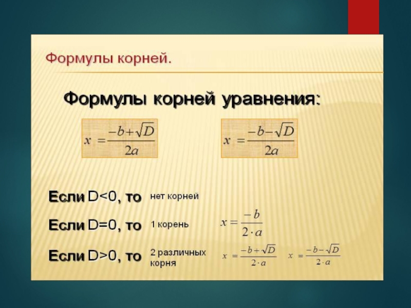 Полное квадратное уравнение не имеет корней, если D меньше 0.
