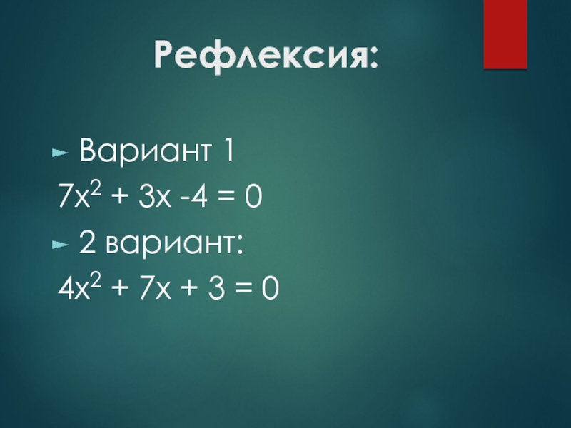 Дано уравнение 3x2 - 7x + 4 = 0. D =1.