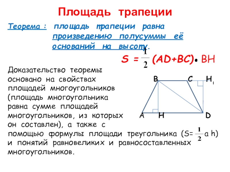 и с использованием формулы площади прямоугольника (S=a h) и понятий равновеликих и равносоставленных многоугольников.