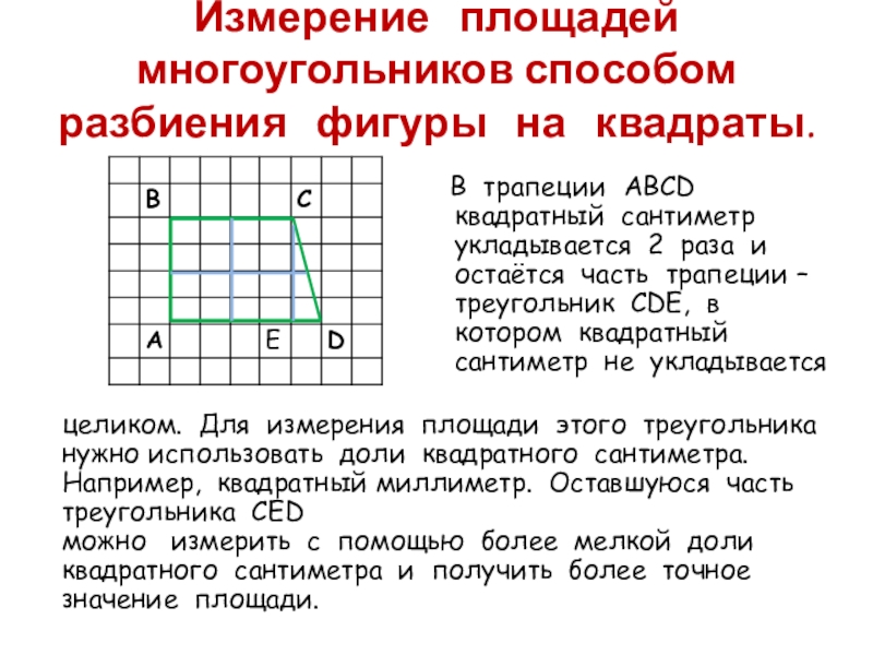 целиком. Для измерения площади этого треугольника нужно использовать доли квадратного сантиметра. Например, квадратный миллиметр. Оставшуюся часть треугольника CED