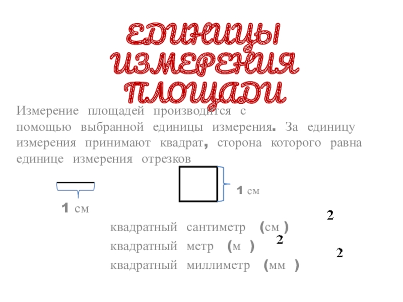 Слайд 5ЕДИНИЦЫ ИЗМЕРЕНИЯ ПЛОЩАДИ