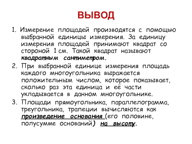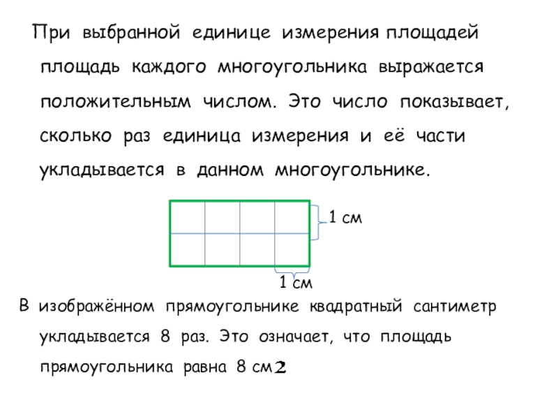 положительным числом. Это число показывает, сколько раз единица измерения и её части укладывается в данном многоугольнике.