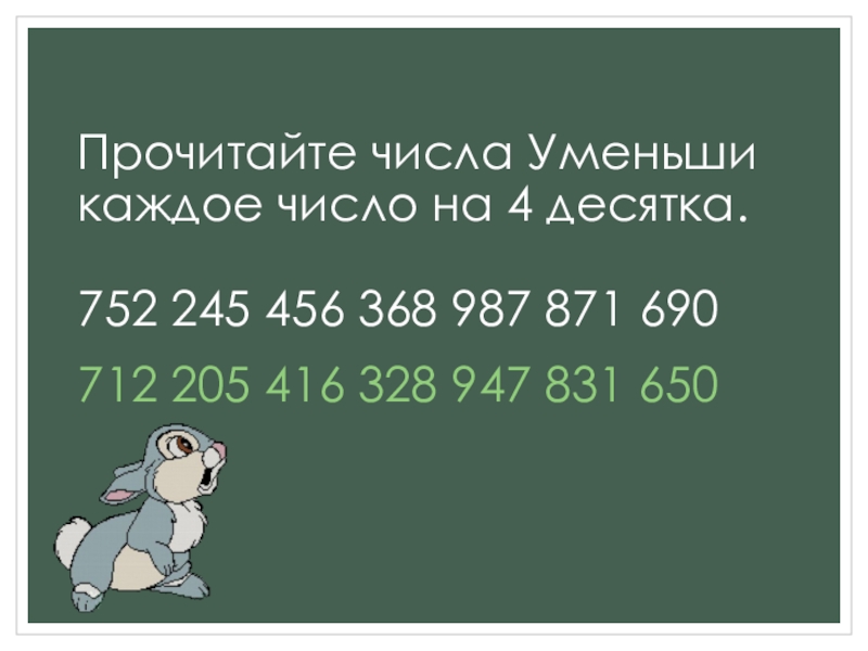 Слайд 6Прочитайте числа Уменьши каждое число на 4 десятка. 752 245 456 368 987 871 690