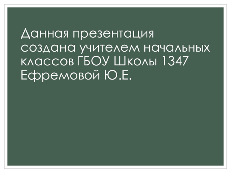 Данная презентация создана учителем начальных классов ГБОУ Школы 1347 Ефремовой Ю.Е.