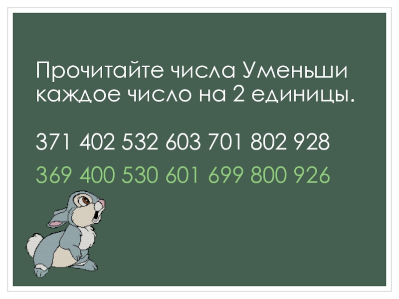 Слайд 5Прочитайте числа Уменьши каждое число на 2 единицы. 371 402 532 603 701 802 928
