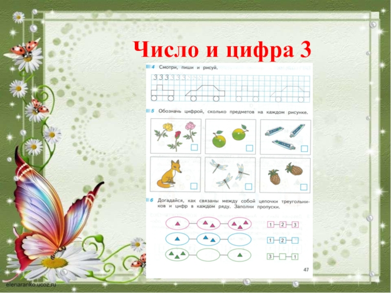 Презентация, доклад к уроку по математике Число и цифра 3 ( 1 класс)
