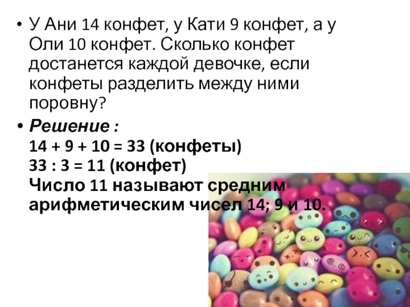 Слайд 13У Ани 14 конфет, у Кати 9 конфет, а у Оли