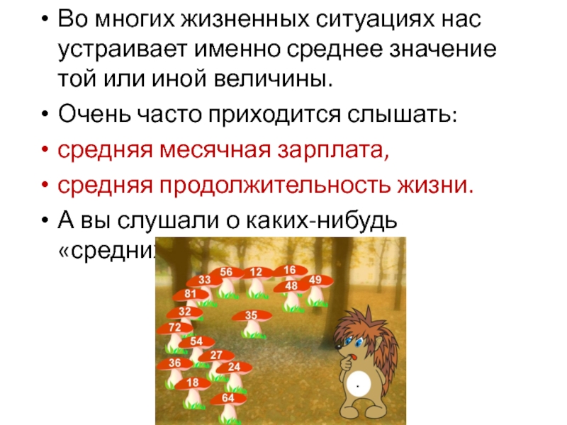Слайд 10Во многих жизненных ситуациях нас устраивает именно среднее значение той или