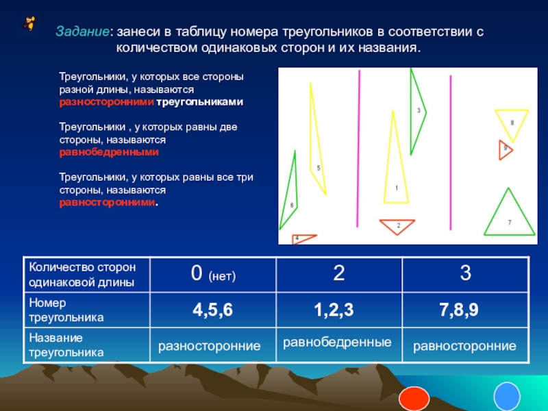 Треугольники, у которых все стороны разной длины, называются разносторонними треугольниками