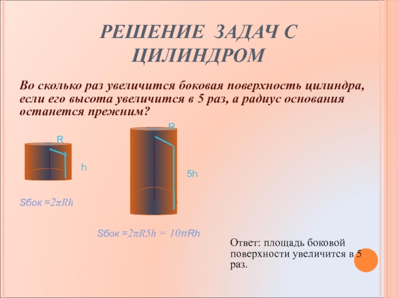 Ответ: площадь боковой поверхности увеличится в 5 раз.