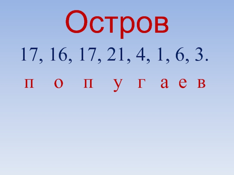 Остров 17, 16, 17, 21, 4, 1, 6, 3.  п  о  п  у