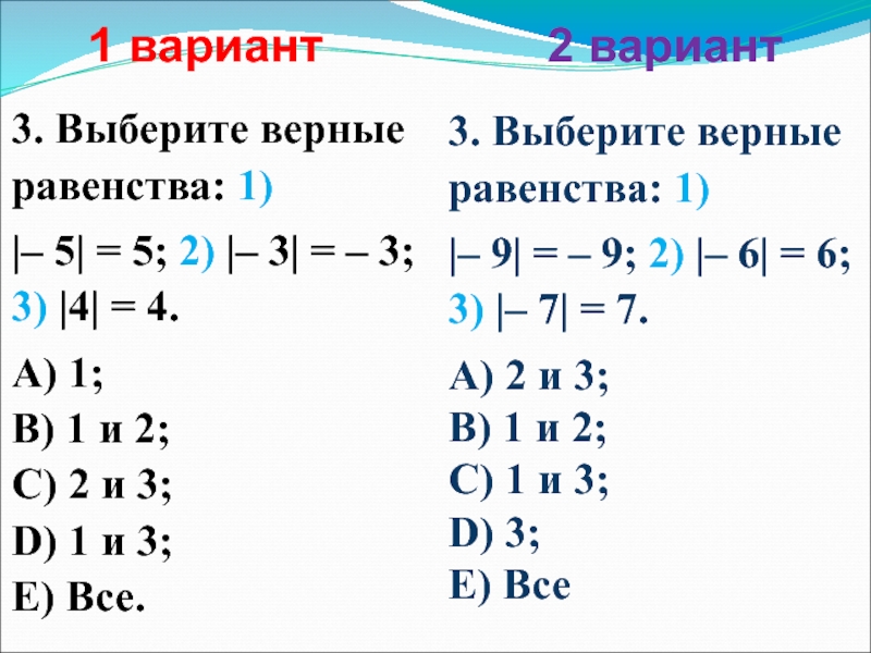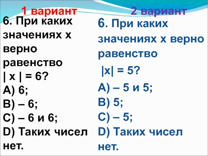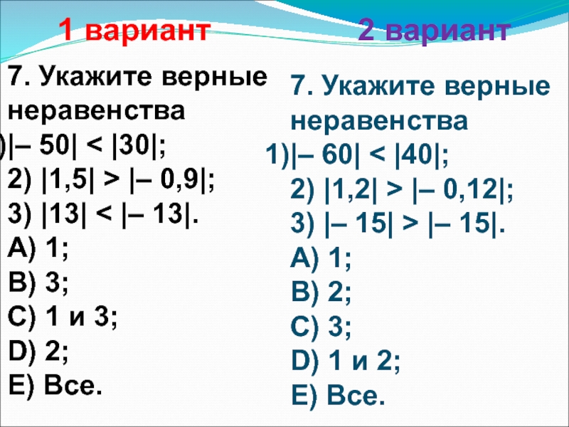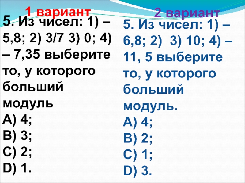 5. Из чисел: 1) – 6,8; 2) 3) 10; 4) – 11, 5 выберите то, у которого больший модуль.