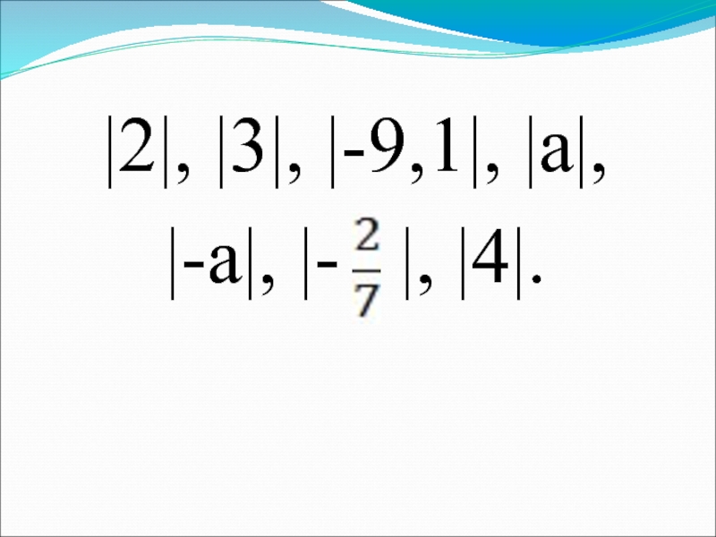 |– 9| = – 9; 2) |– 6| = 6; 3) |– 7| = 7.