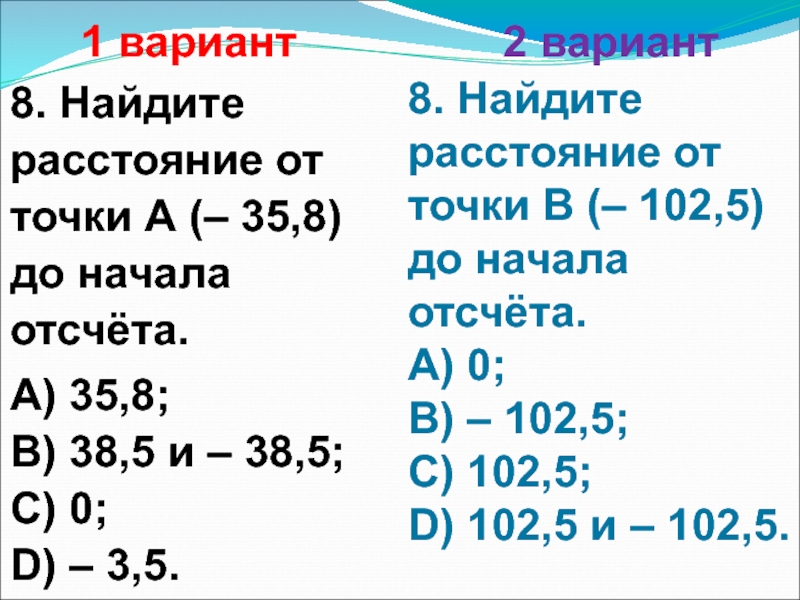 8. Найдите расстояние от точки А (– 35,8) до начала отсчёта.
