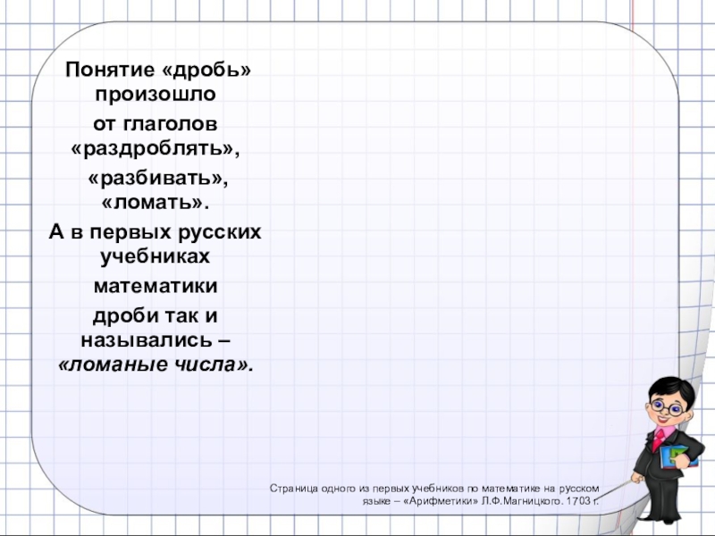 Страница одного из первых учебников по математике на русском языке – «Арифметики» Л.Ф.Магницкого. 1703 г.