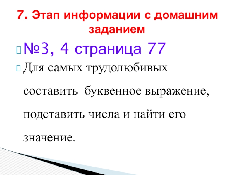 7. Этап информации с домашним заданием