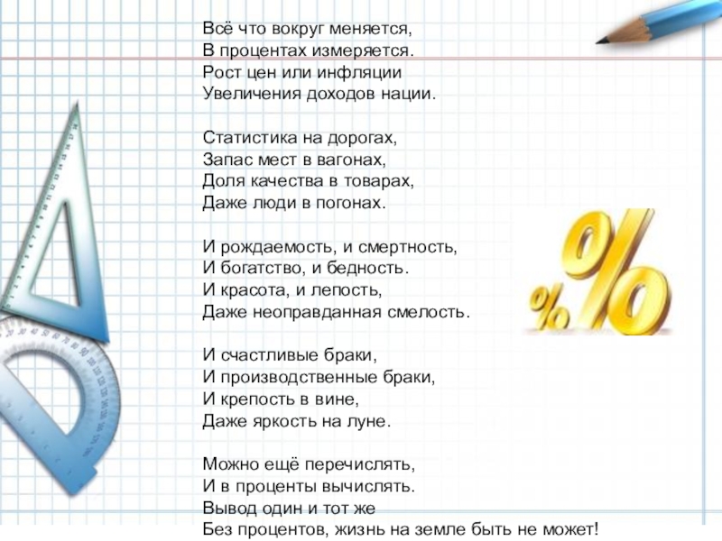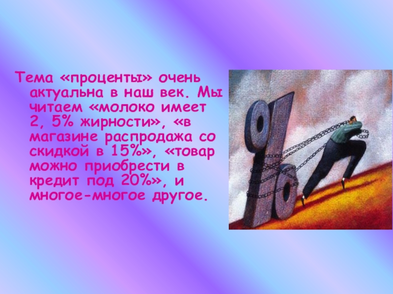 Слайд 9Тема «проценты» очень актуальна в наш век. Мы читаем «молоко имеет
