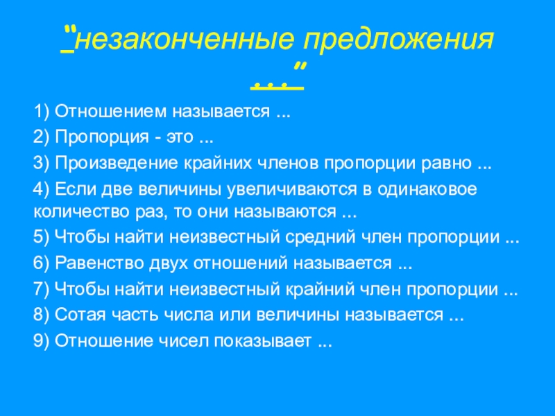 7) Чтобы найти неизвестный крайний член пропорции ...