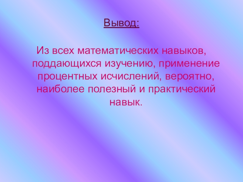 Из всех математических навыков, поддающихся изучению, применение процентных исчислений, вероятно, наиболее