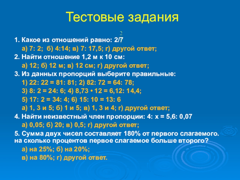 2; б) 4:14; в) 7: 17,5; г) другой ответ;
