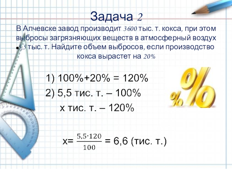 выбросы загрязняющих веществ в атмосферный воздух 5,5 тыс. т. Найдите объем выбросов, если производство кокса вырастет на 20%