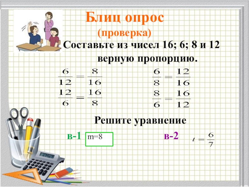 Составьте из чисел 16; 6; 8 и 12 верную пропорцию.