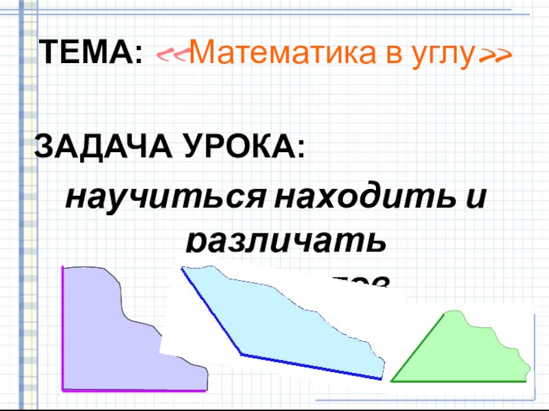 ТЕМА: «Математика в углу»ЗАДАЧА УРОКА: научиться находить и различать