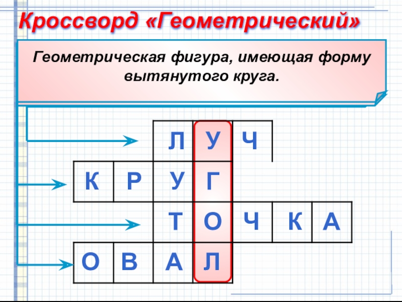 Кроссворд «Геометрический» Л У ЧК Р У ГТ О Ч К АО В А Л