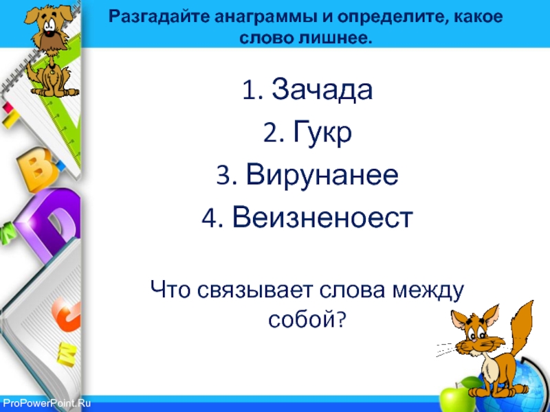 Слайд 2Разгадайте анаграммы и определите, какое слово лишнее.