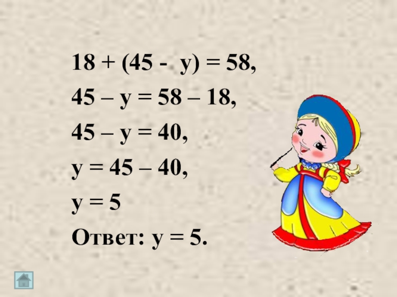 в) 35 + x = 45 – 20 - 35