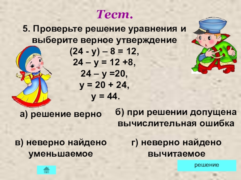 б) при решении допущена вычислительная ошибка