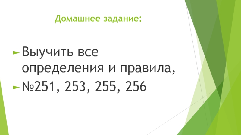 Домашнее задание:Выучить все определения и правила,№251, 253, 255, 256