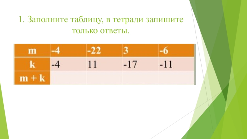 - Используя таблицу знаков, запишите сумму без скобок и дайте