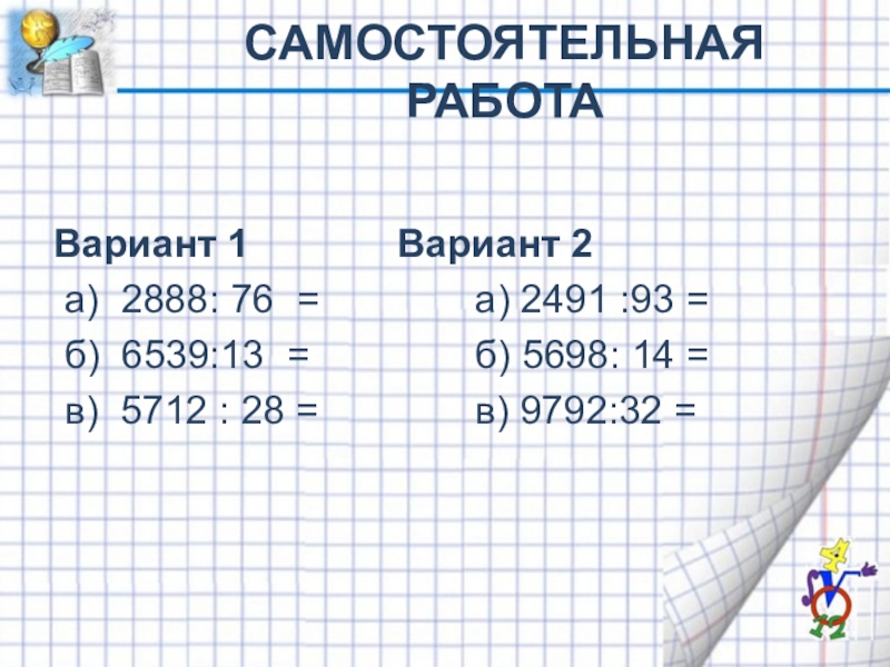САМОСТОЯТЕЛЬНАЯ РАБОТАВариант 1	  	    Вариант 2 а) 2888: 76 =