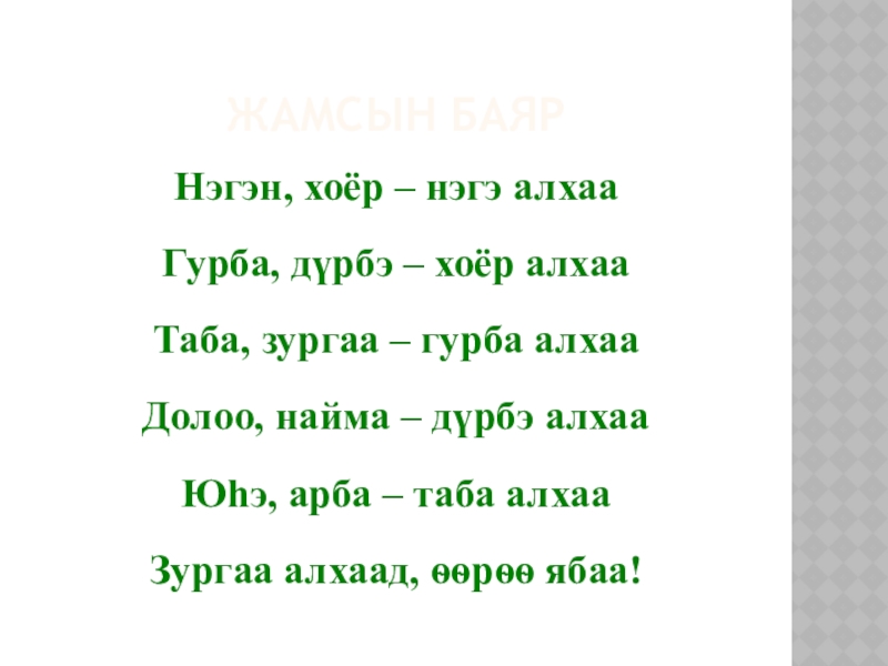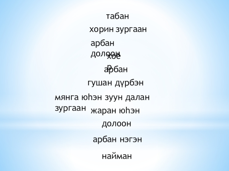 Даабари:тоогой нэрэнуудые олоод цифрнуудаар бэшэгты.