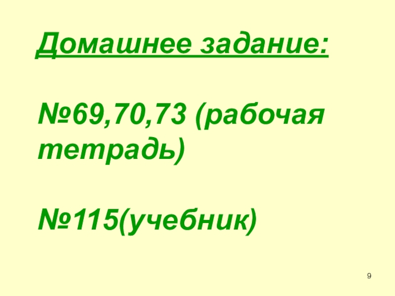Домашнее задание:№69,70,73 (рабочая тетрадь)№115(учебник)