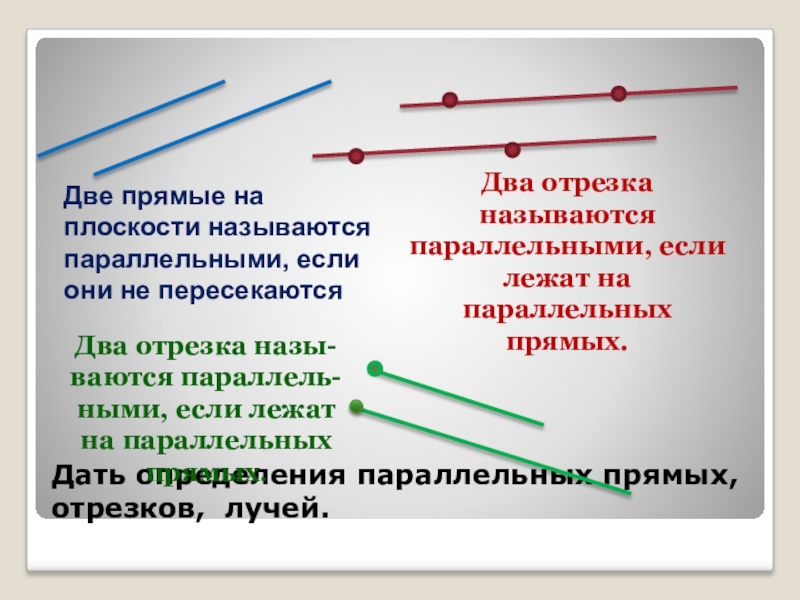 Два отрезка назы-ваются параллель-ными, если лежат на параллельных прямых.
