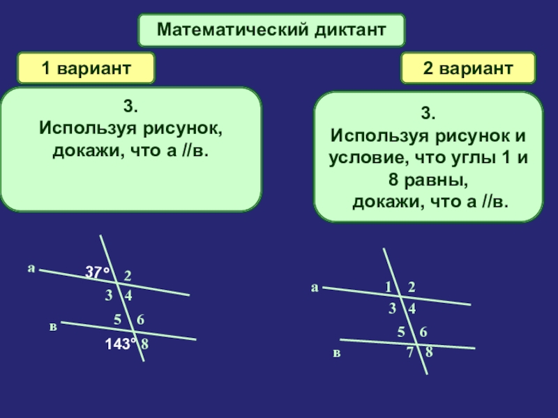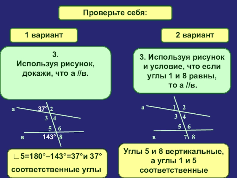 3. Используя рисунок и условие, что если углы 1 и 8 равны,