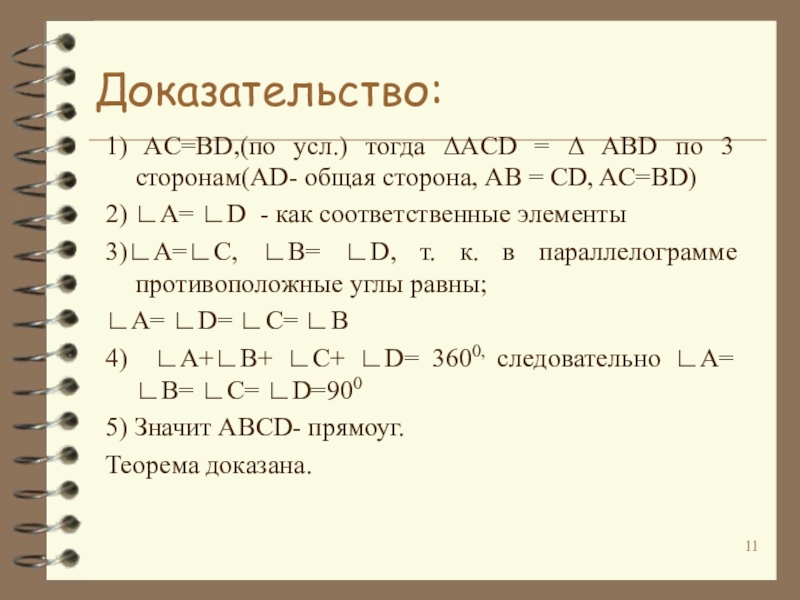 3) Значит AC=BD, как соотв. элементы в равных Δ