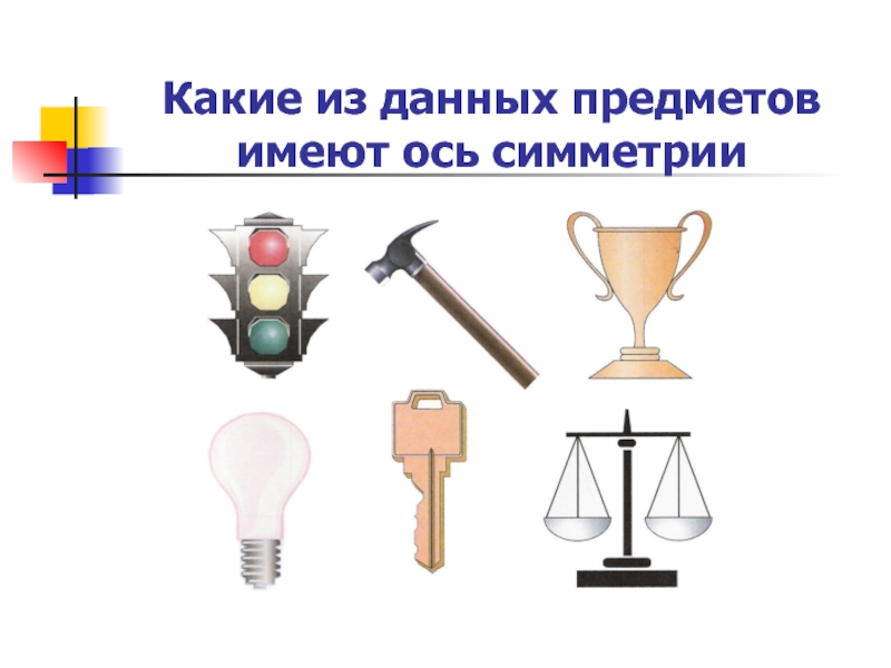 Слайд 3Какие из данных предметов имеют ось симметрии