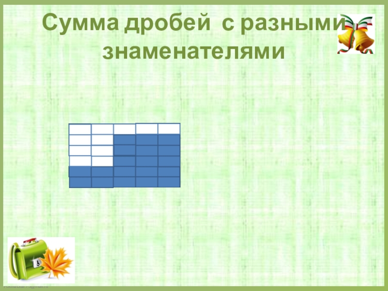 Слайд 9Сумма дробей с разными знаменателями