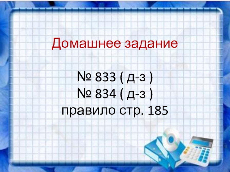 Домашнее задание  № 833 ( д-з ) № 834 ( д-з ) правило стр. 185