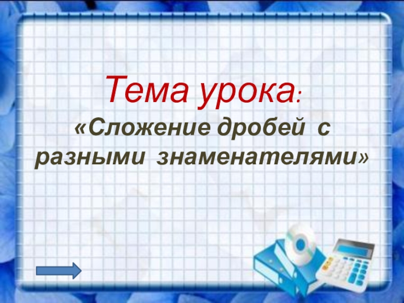 Слайд 5Тема урока: «Сложение дробей с разными знаменателями»