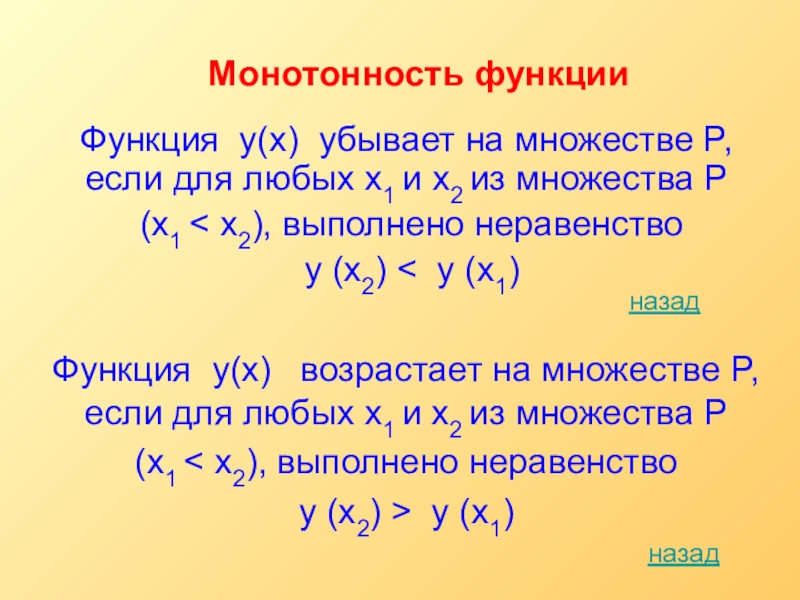 Функция y(х) возрастает на множестве P, если для любых x1 и x2 из множества P