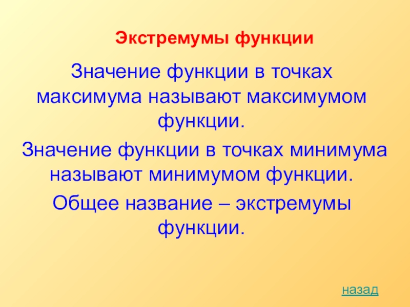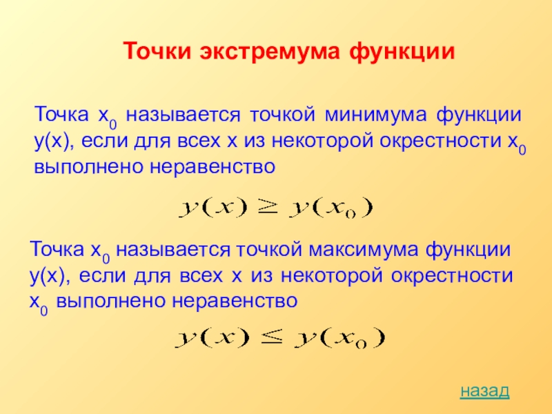 Точка x0 называется точкой максимума функции y(х), если для всех x из некоторой окрестности x0 выполнено неравенство