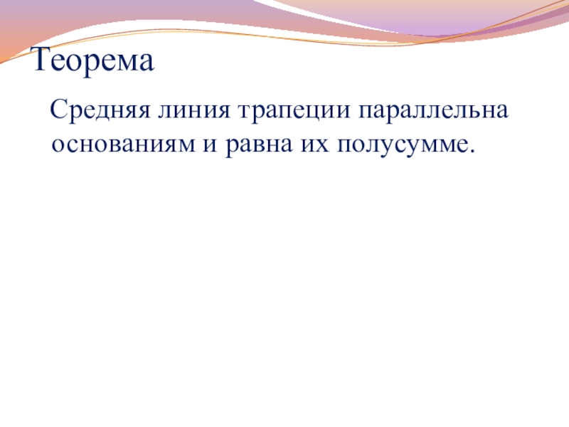 Теорема  Средняя линия трапеции параллельна основаниям и равна их полусумме.