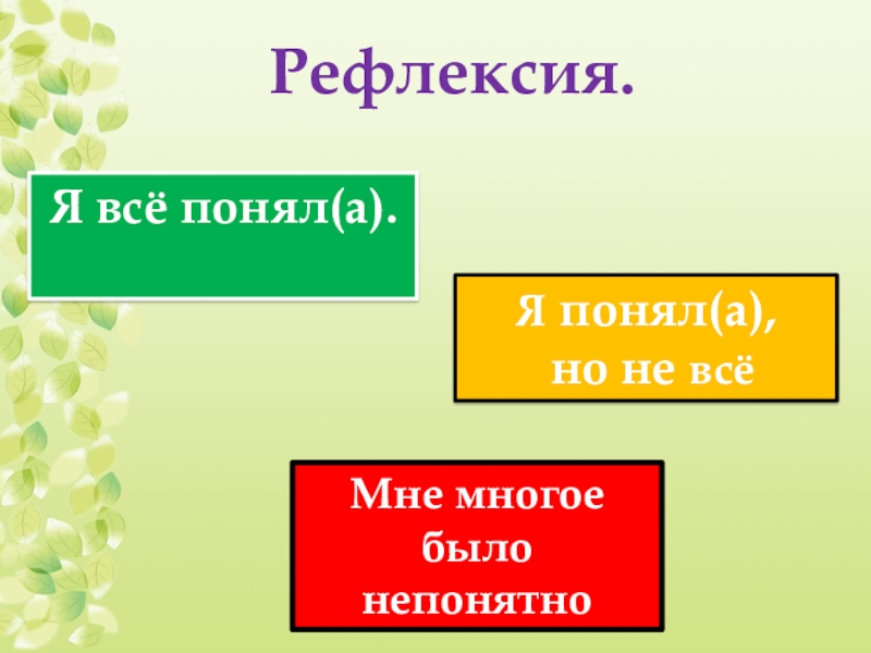Рефлексия. Я всё понял(а).Я понял(а), но не всёМне многое было непонятно
