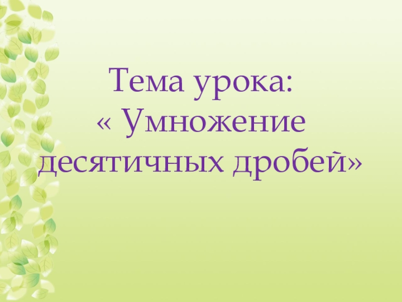 Слайд 6Тема урока: « Умножение десятичных дробей»