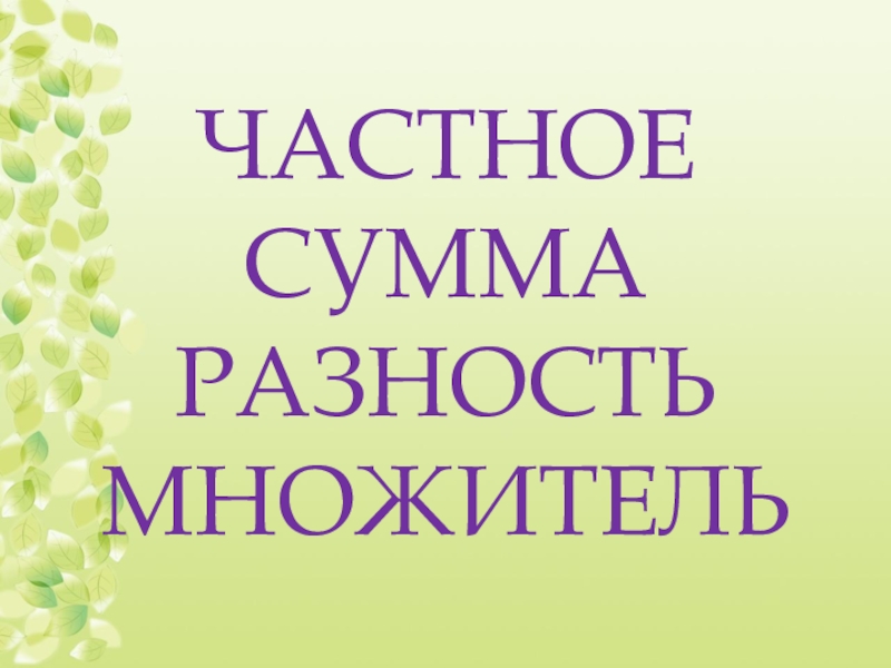 Слайд 5ЧАСТНОЕ СУММА РАЗНОСТЬ МНОЖИТЕЛЬ